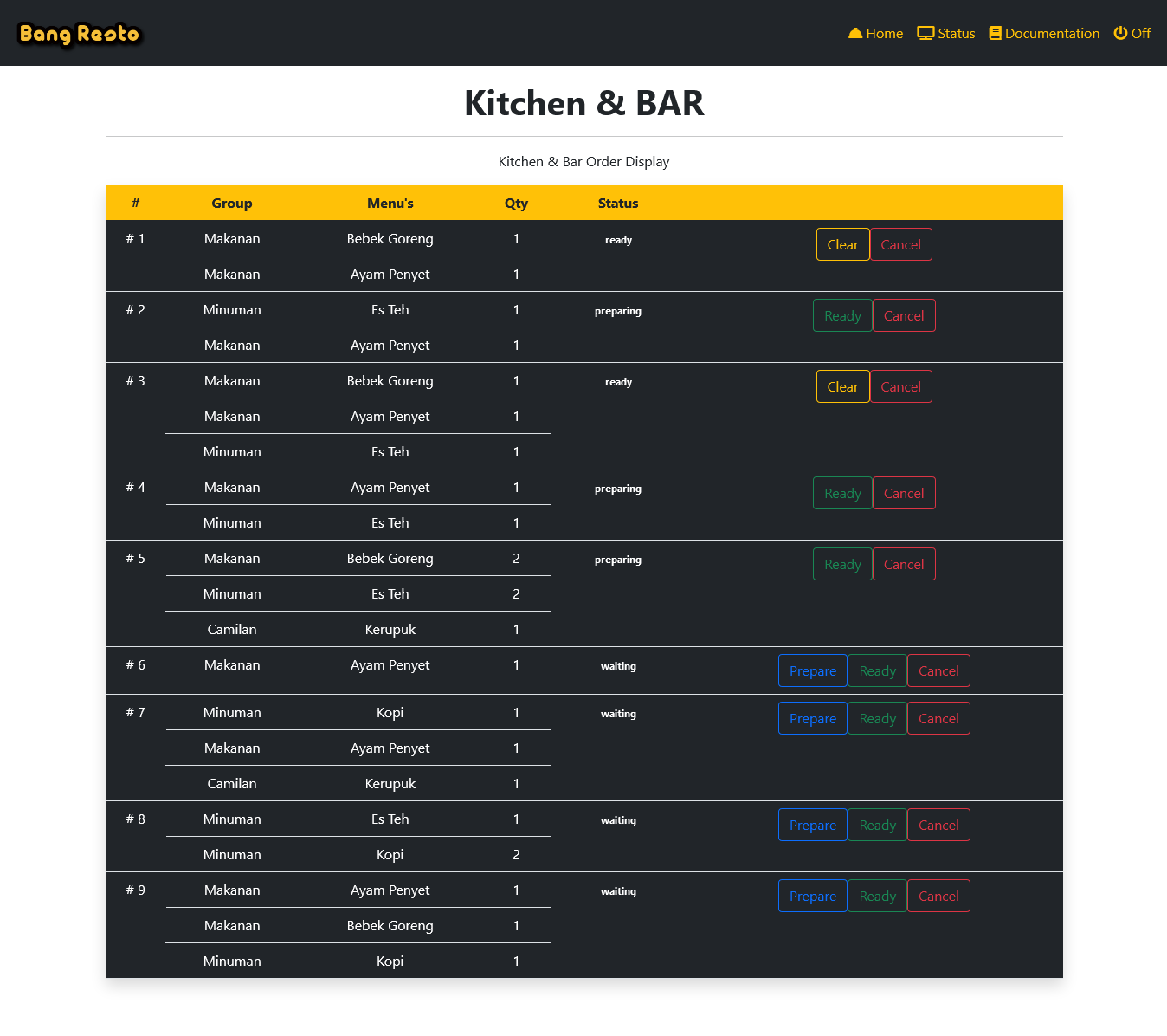 Now with kitchen apps very easy and fast to prepare customer order, then kitchen can change or update status order like prepare, or ready in here.