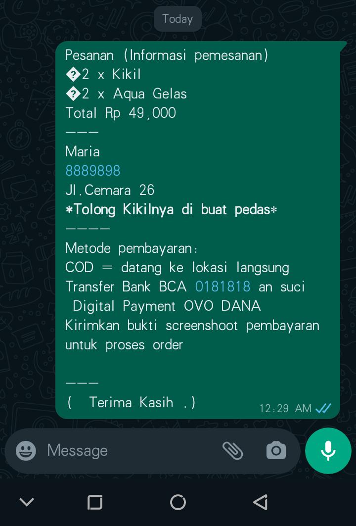 Ketika klik kirim pesanan maka akan langsung masuk ke whatsapp.